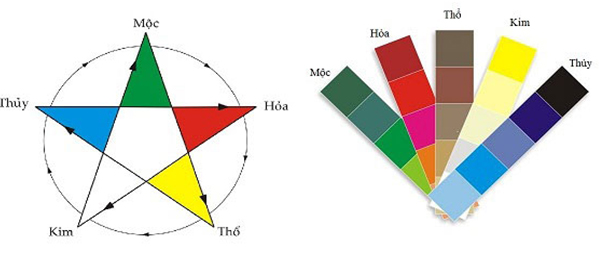 Cung mệnh trong màu sắc: Bạn cũng nên lựa chọn màu sắc sơn nhà phù hợp theo cung mệnh của gia chủ của gia đình. Có thể thấy ngũ hành Kim - Mộc - Thủy - Hỏa - Thổ đều có tác động sinh khắc với nhau và với mỗi mệnh lại có những màu sắc thích hợp: